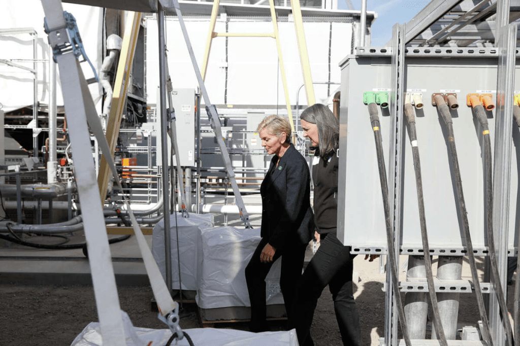 UC Berkeley grad, and former UC Berkeley professor, Jennifer Granholm, Secretary of the Dept of Energy, visits Heirloom Carbon Technologies’ carbon removal plant in Tracy, CA (from San Francisco Chronicle)
