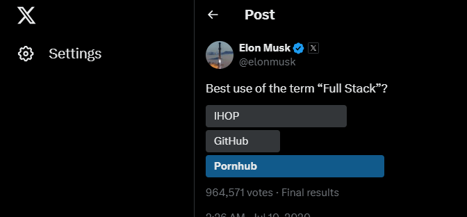 Hyman is a social media darling, perfect for VCs who want to make $billions more than they currently have. And like the uneducated tech-bros that they are, they use cool tech-bro terms at Function Health to describe what they do. For instance, “Your Stack developed with top doctors,” using “stack” that is the mantra for tech bros to describe damn near everything these days, having derived from computer technology describing the front end and the back end of computer applications and the term “full stack.” Note that tech-bro insels such as Elon Musk are fully into this terminology as exemplified by a recent tweet on Twitter from Musk: