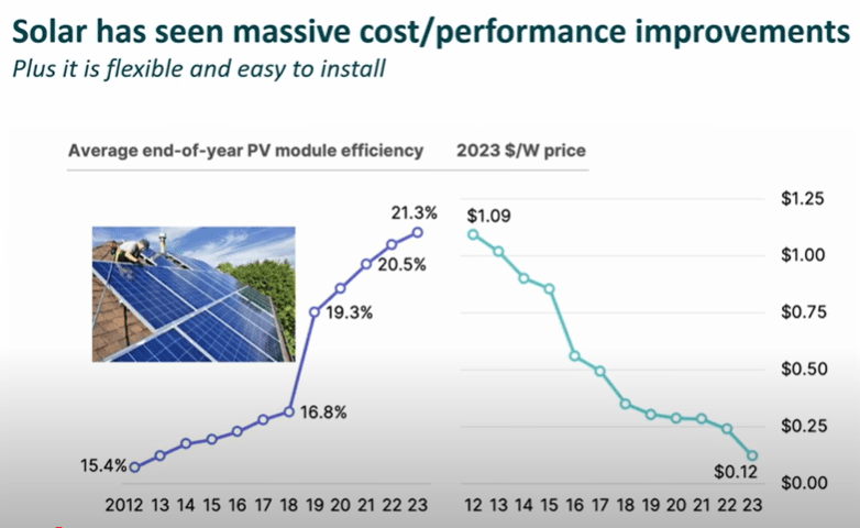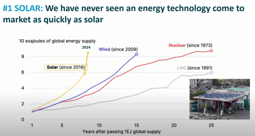 Let’s look at how important solar is, why Carter was its champion, and how China now leads in this technology. The images here are taken from: “Welcome to the Era of Energy Disruption | Gerard Reid | TEDxBerlinSalon.” Gerard Reid gives an excellent presentation, worth your time to watch it.
