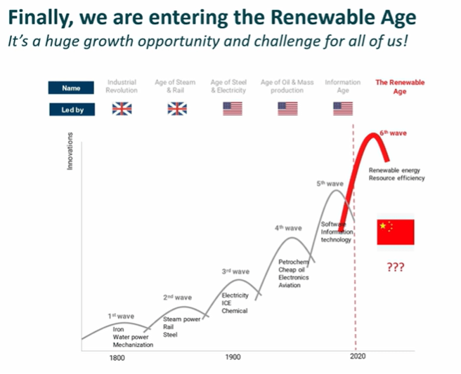 For the last 100 years the USA has lead the various technology revolutions. However we passed the lead to China when we consider the new era of renewable energies.