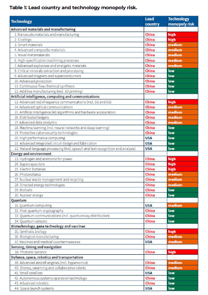 From the Australian Strategic Policy Institute, technology tracker